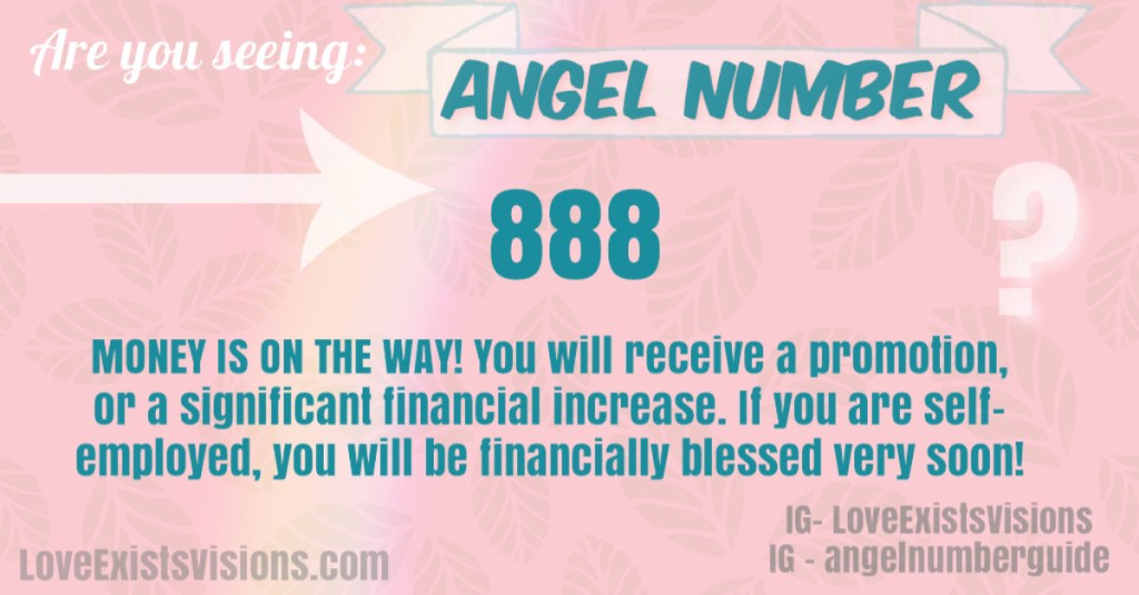Are you seeing angel number 888? This number is letting you know MONEY IS COMING! If you’re worried about money, don’t! Your efforts will pay off significantly!