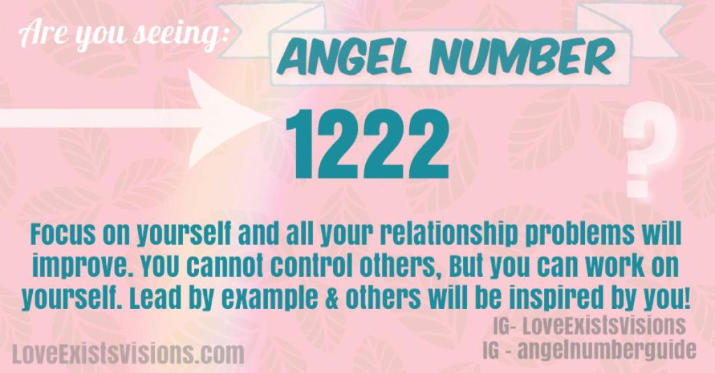 Are you seeing angel number 1222? This number is letting you know that any problems you have with others (Both relationships friendships, & business) are fixable! If you work on your SELF love, and your own issues, a lot improve with your relationships with other people.