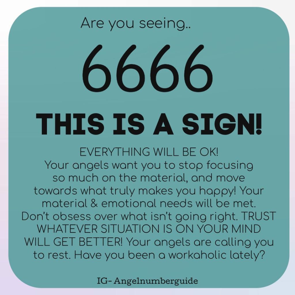 😇 Are you seeing angel number 6666?😇 Don’t worry! I know this number is associated with dark things, like the devil. This number is nothing more than just a very material number.. You might be worrying too much about material items to excess. Don’t worry so much about money right now. If you follow your heart you will get through this time.