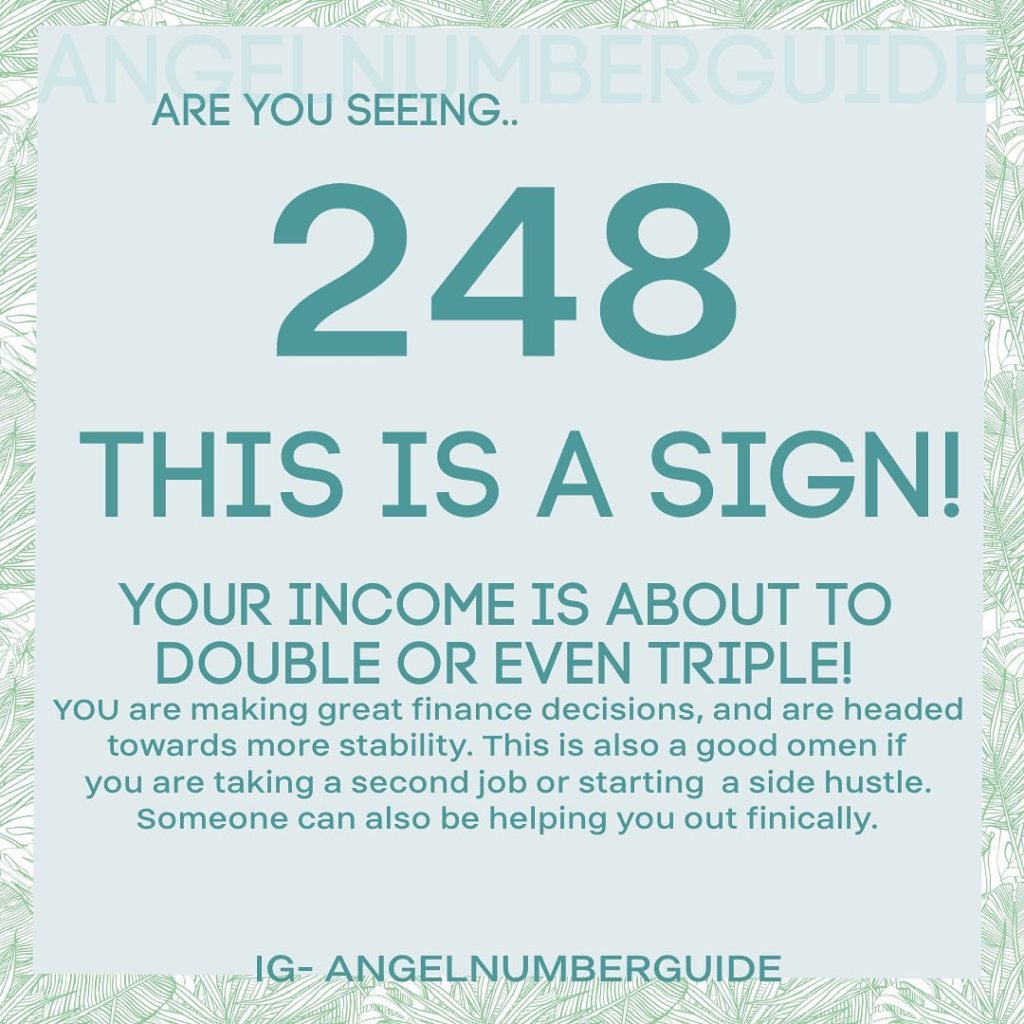 😇Are you seeing angel number 248? THIS IS A SIGN! This is an excellent money omen! This means that things are really going come together for you financially. You are going to find that you are making money and feeling stable.