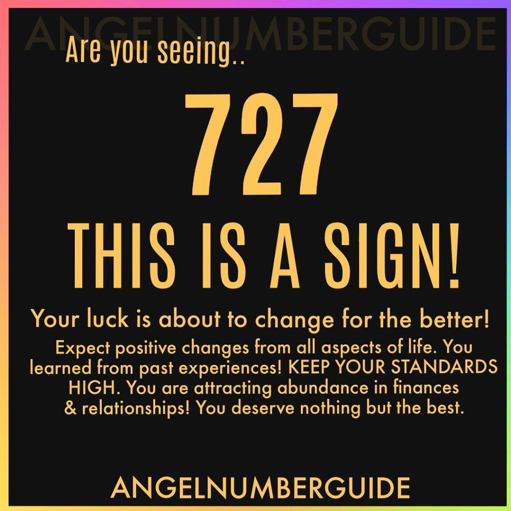 Have you been seeing Angel number 727?! Your luck is about to change for the better! Part of the reason is because you’ve learned from past experiences, so now you are smarter! Part of attracting what you want into your life is to know where to invest your energy properly. That also includes people, and work situations as well. Keep in mind time is money! Stay away from people who waste your time for their own personal gain.